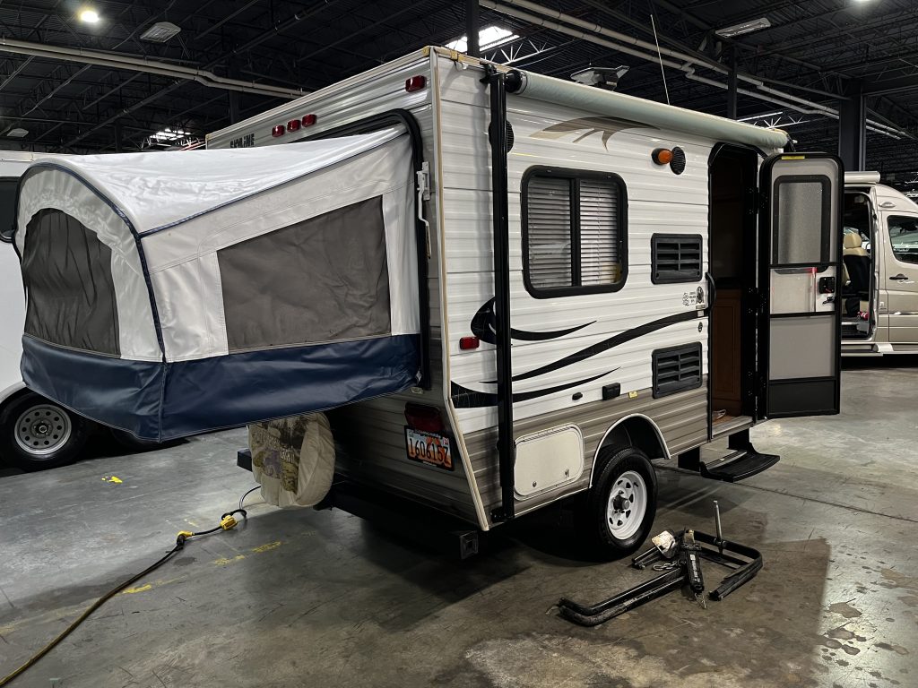 This travel trailer is one of our valued customer’s item that is being sold as a consignment sale. It has been stored indoors and meticulously cared for! This is the perfect compact trailer for those who like to travel light with all the necessities! Features included: